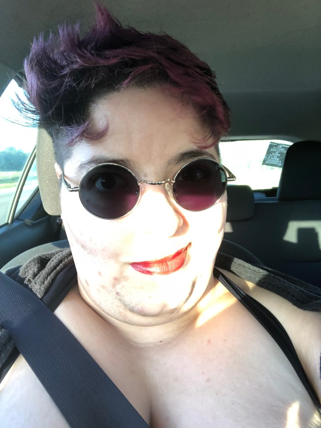 We’re going to celebrate my mother in law’s birthday (the one who finally knows my Darling Wife and I are married almost a year after the fact since she didn’t show up to the license signing, but that’s another story) with a bunch of my Darling Stephanie’s family. It’ll be fun, but I doubt I’ll have many photos as water park + cell phone = bad times since I haven’t a waterproof case. So here’s a blinded-by-sunlight selfie beforehand.