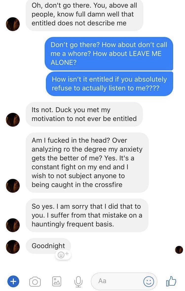 So that’s what I’ve been dealing with for about two and a half years. And that is on top of another decade plus of how much he loved me, how much I had destroyed his life when we broke up. Mind you, this was back in… I really want to say 2004, maybe late 2003. And it’s been bullshit since then. How the thought of me got him through the night he got a DUI or something. I don’t hate him, but I hate his actions.