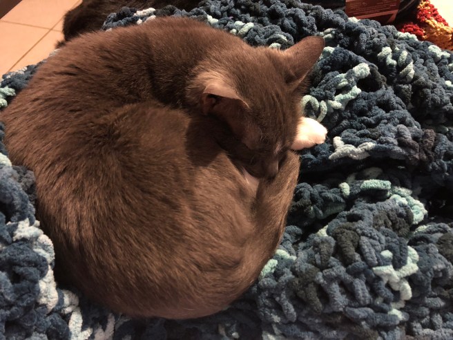 In any case! The cats are helping me crochet more of Steph’s blanket tonight.