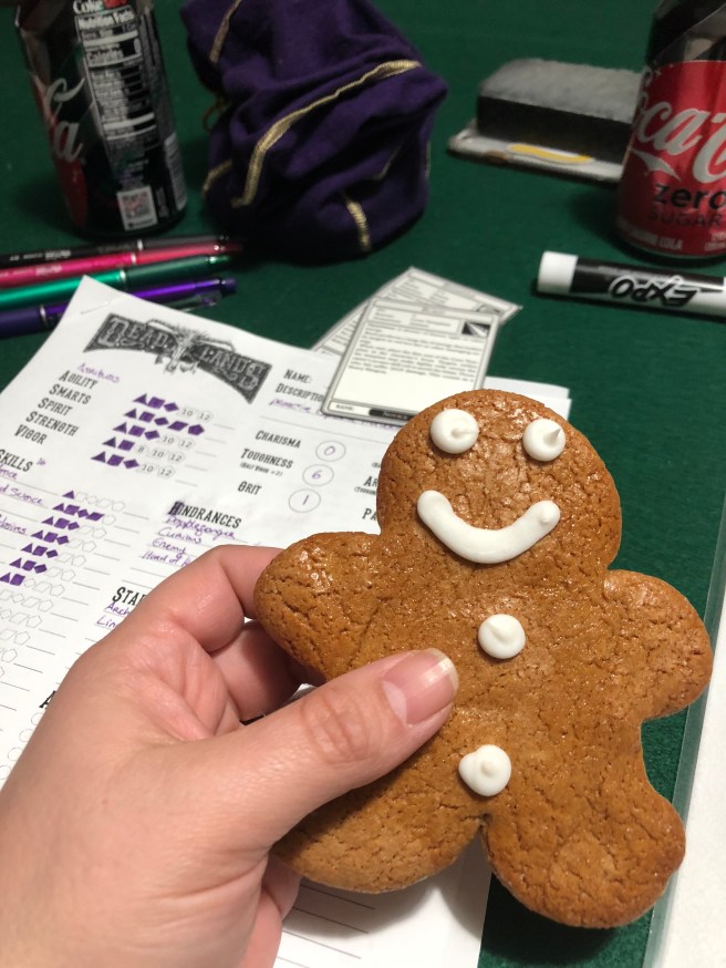 It’s game day at J and Bill6’s. We’re belatedly celebrating a pair of birthdays with pizza, Deadlands, baked goods, and a whole lot of laughter.