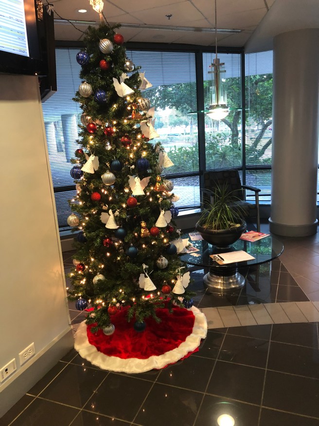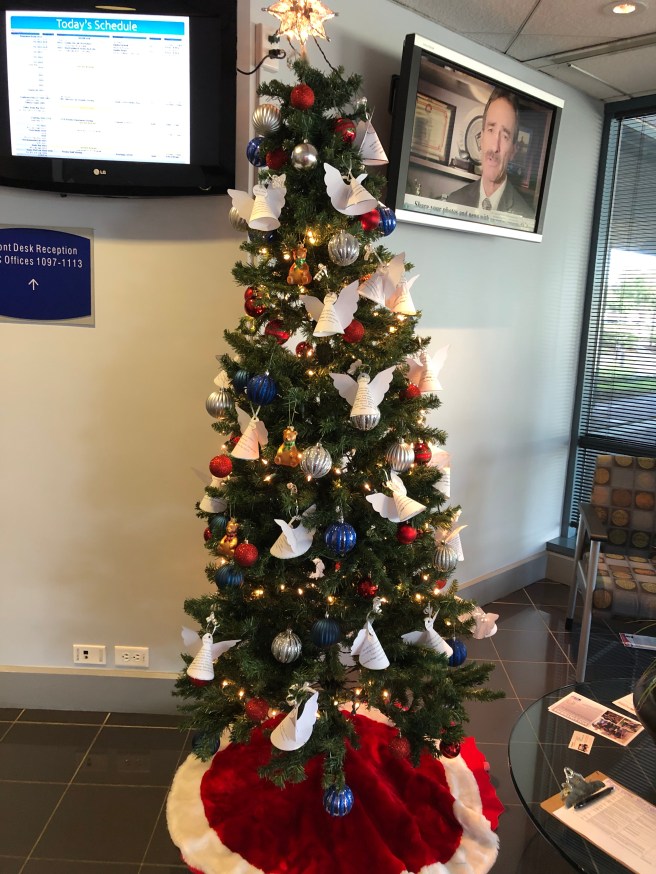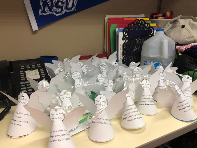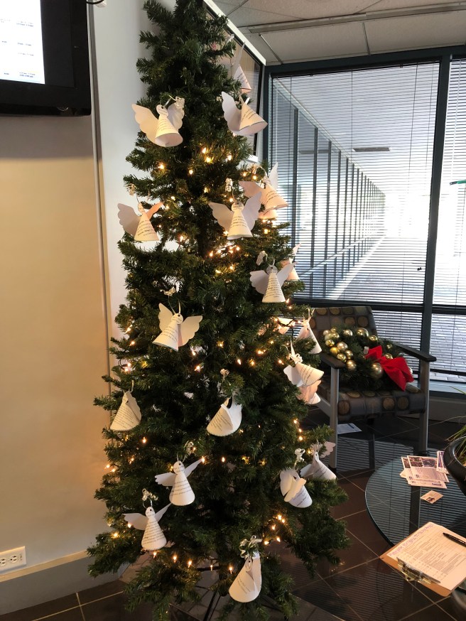 We’ve put up the holiday decorations at work this week. I was tasked with making our holiday donation angels.