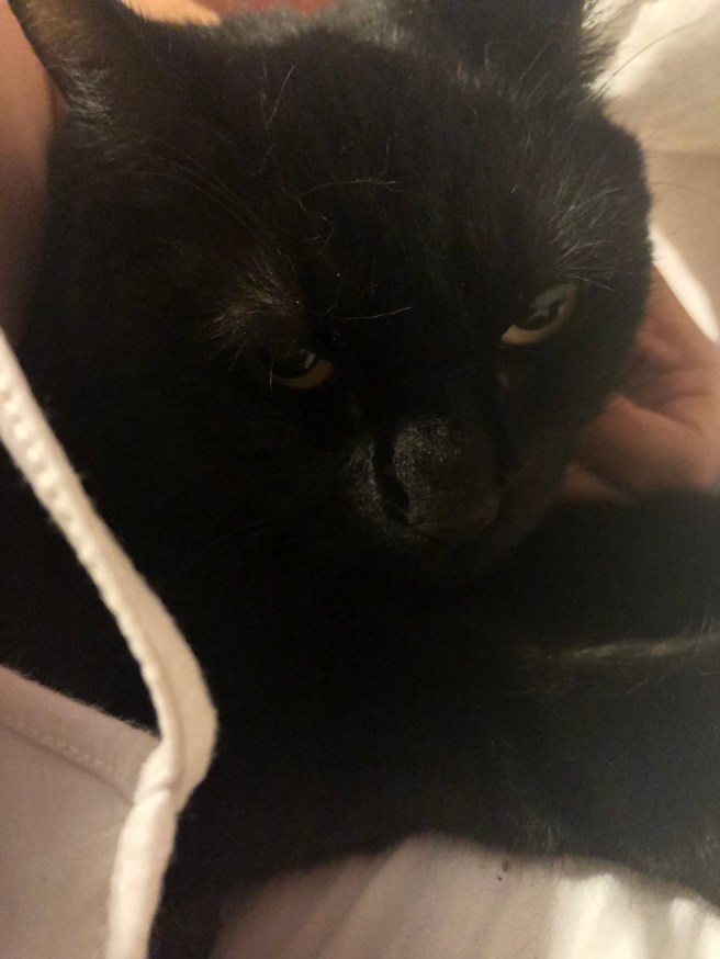 Such a cuddle. I’d take a picture of Spock but he’s hiding in the small of my back right now.