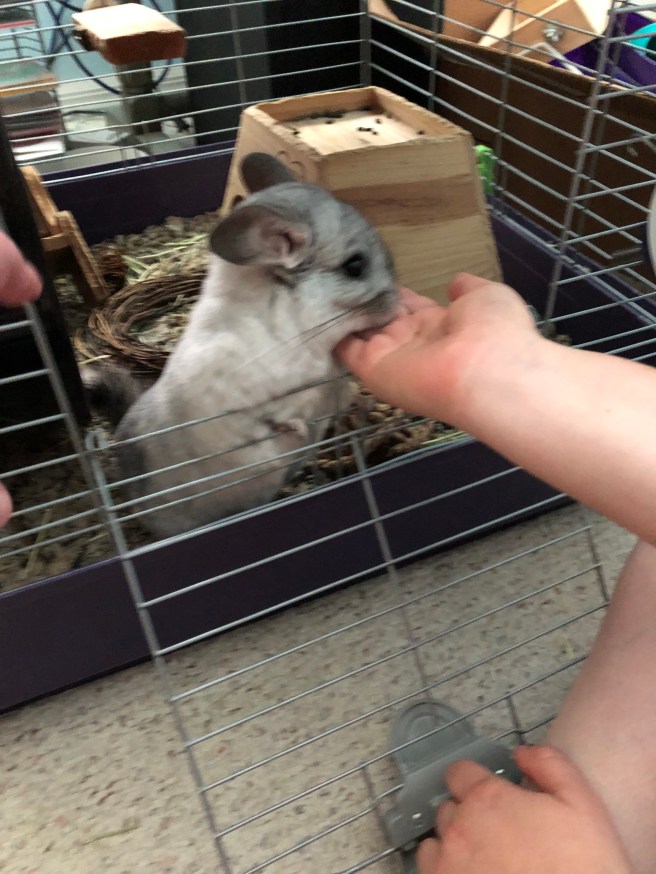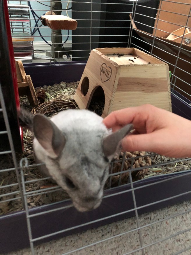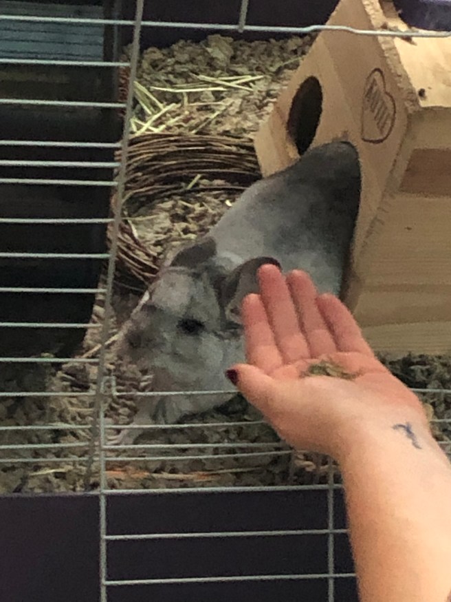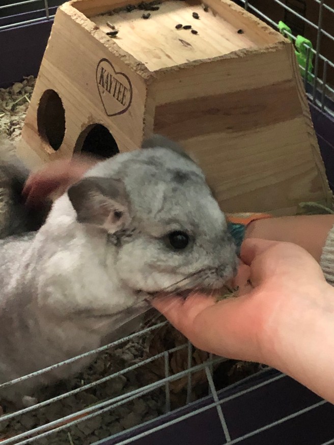 Steph and I got to meet a newer furry family member! Taffy the Chinchilla! He was a curious little cloud of cuteness.