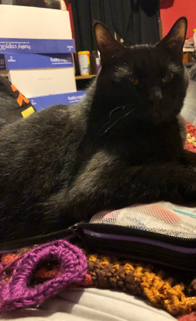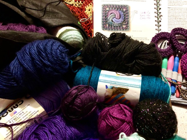 In other news, I started another scrap shawl today. This one is a mix of jewel tones and black. It’s a motif-bottomed shawl. This particular design will be called The Butterfly Queen Shawl.