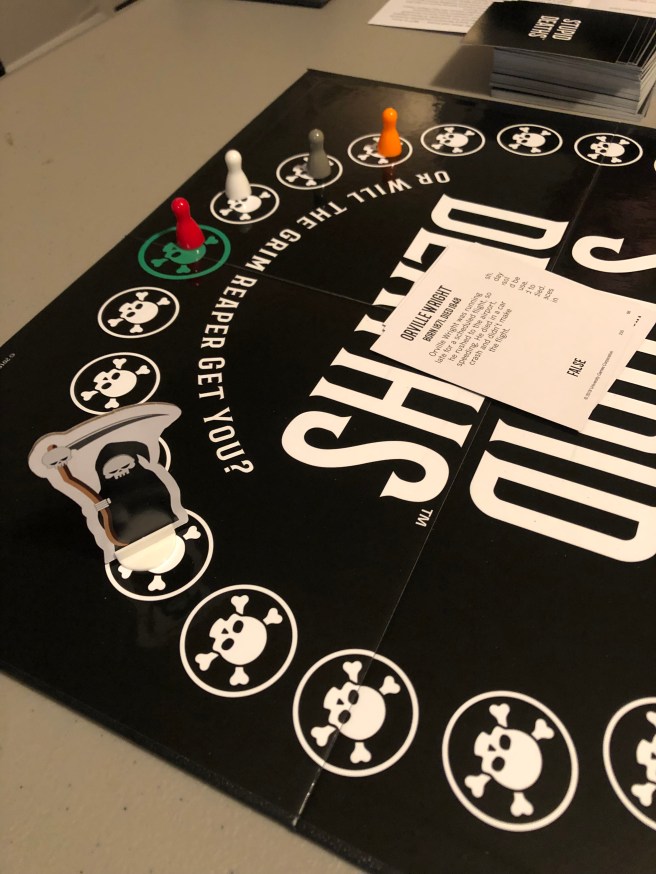And the game? It is is more than slightly ironic considering my current mental state. My Darling Wife won with the Grim Reaper close behind.