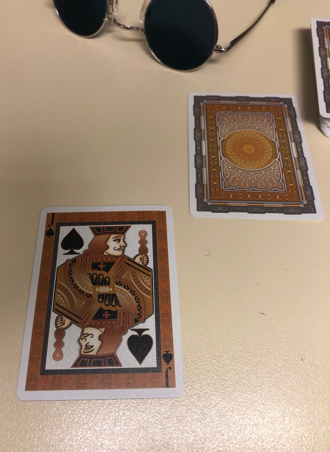 I used the Aurora deck by Bicycle for a bit of simple cartomancy. Cartomancy is using playing cards as tarot cards. I use a deck of 53 because I include one joker when I do this.