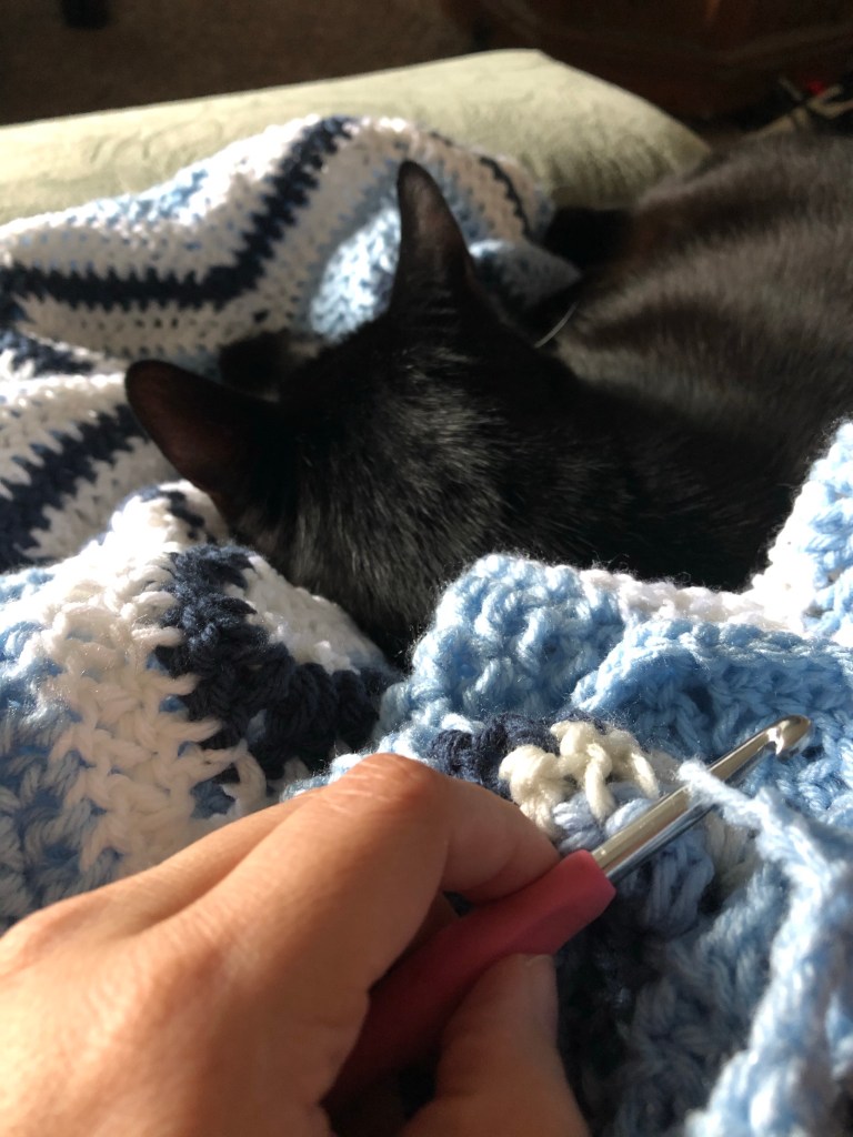 Anyway, I’ve got a yarn color change coming up on Sparrow’s Seaside Blanket, so I’m going to go. I’ll stay up till Fen gets home from work, just to see how their day was, and then head to bed.