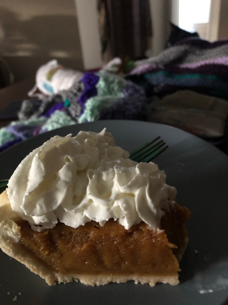 Spock woke me up stupidly early this morning. Like just after five a.m. stupid early. I tried to go back to bed, but no dice. So I did some yoga, and had some pumpkin pie for breakfast. Heh.