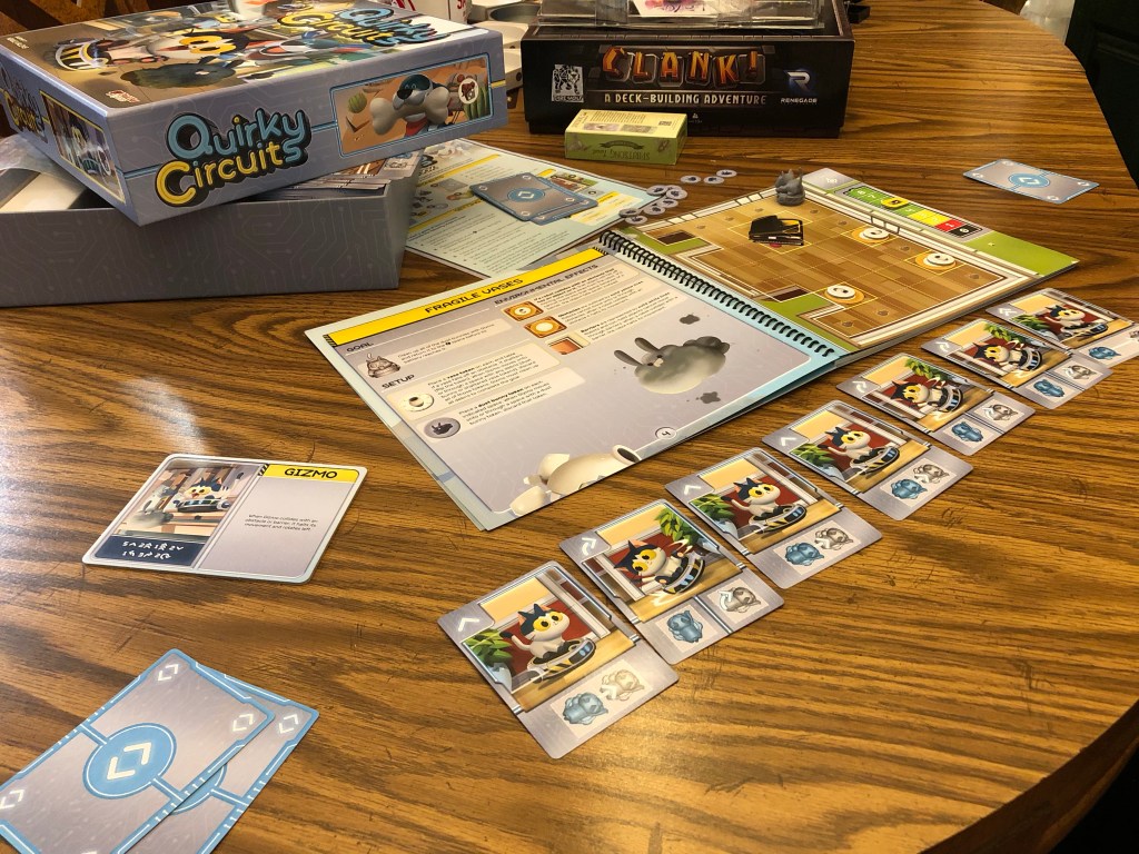I spent most of my day up at J and Bill6’s place. I learned two new board games this weekend: Clank and Quirky Circuits.