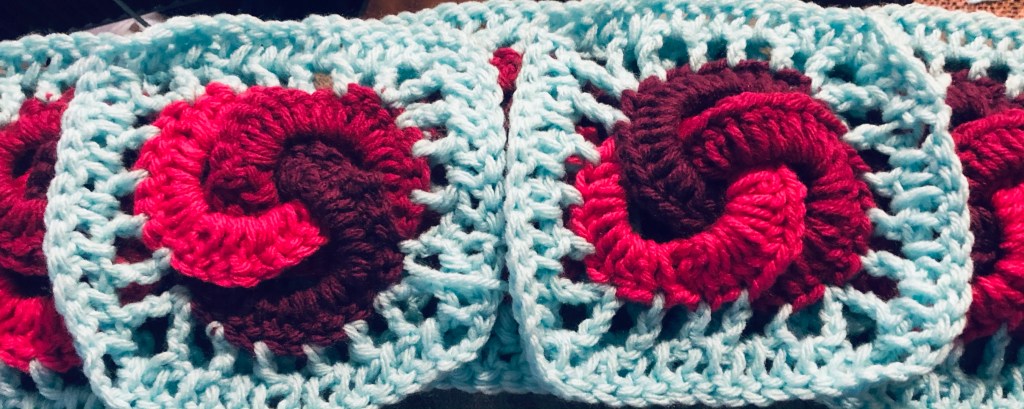 I’m eight motifs into the twenty one of the blanket I’m making for Meg, the Jeweled Knot Blanket. It’s going really well. I may be able to make this pattern from memory by the end of it.