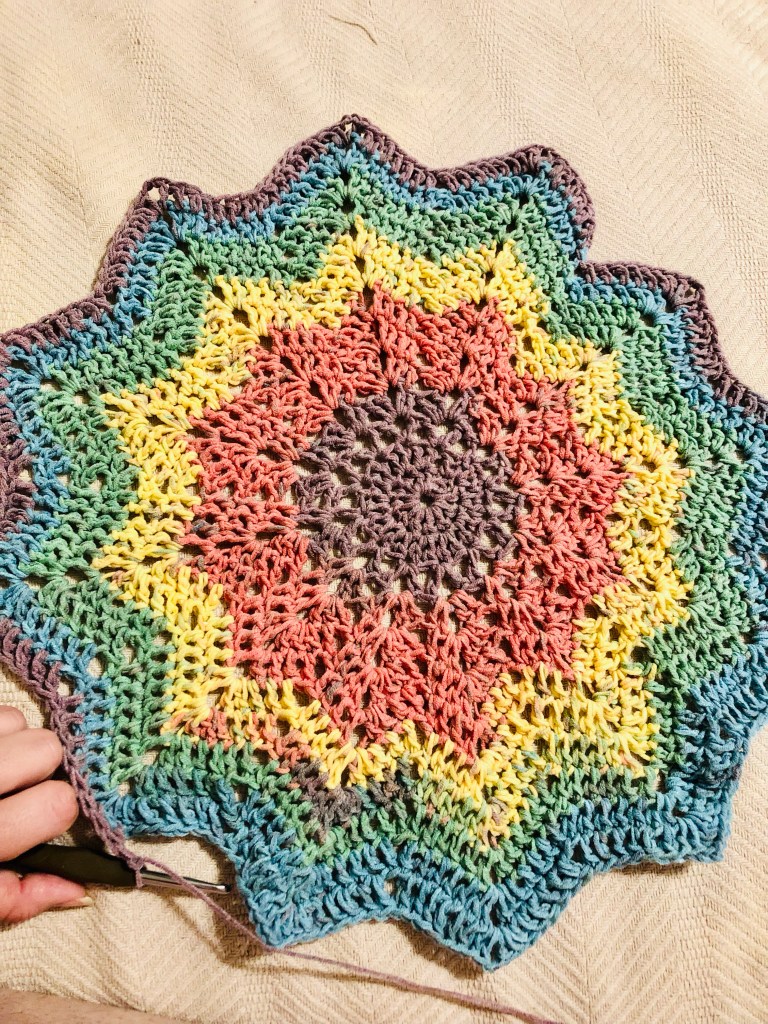 Social media went down today. Facebook, Instagram, a few others I don’t use. It was very frustrating not being able to chat with my friends on lunch. I did crochet though. Worked on Grandma Gator’s Lapghan.