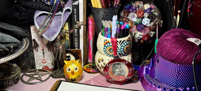 The photo tonight is my desk setup for studying. Not the full thing, as I’d practically need to take a panoramic for the full L-shaped desk to be revealed.